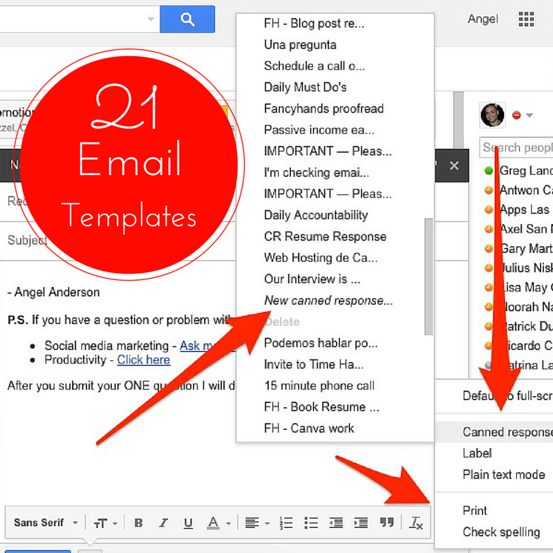 To get you going, I’m going to give you the 21 email templates that I use almost on the daily basis plus an email on how I use them. These are not simple email templates that you can find anywhere for free. I include several email templates that I use with FancyHands (my virtual assistants) when I request them to research a blog post, social media audits and follow up with clients.